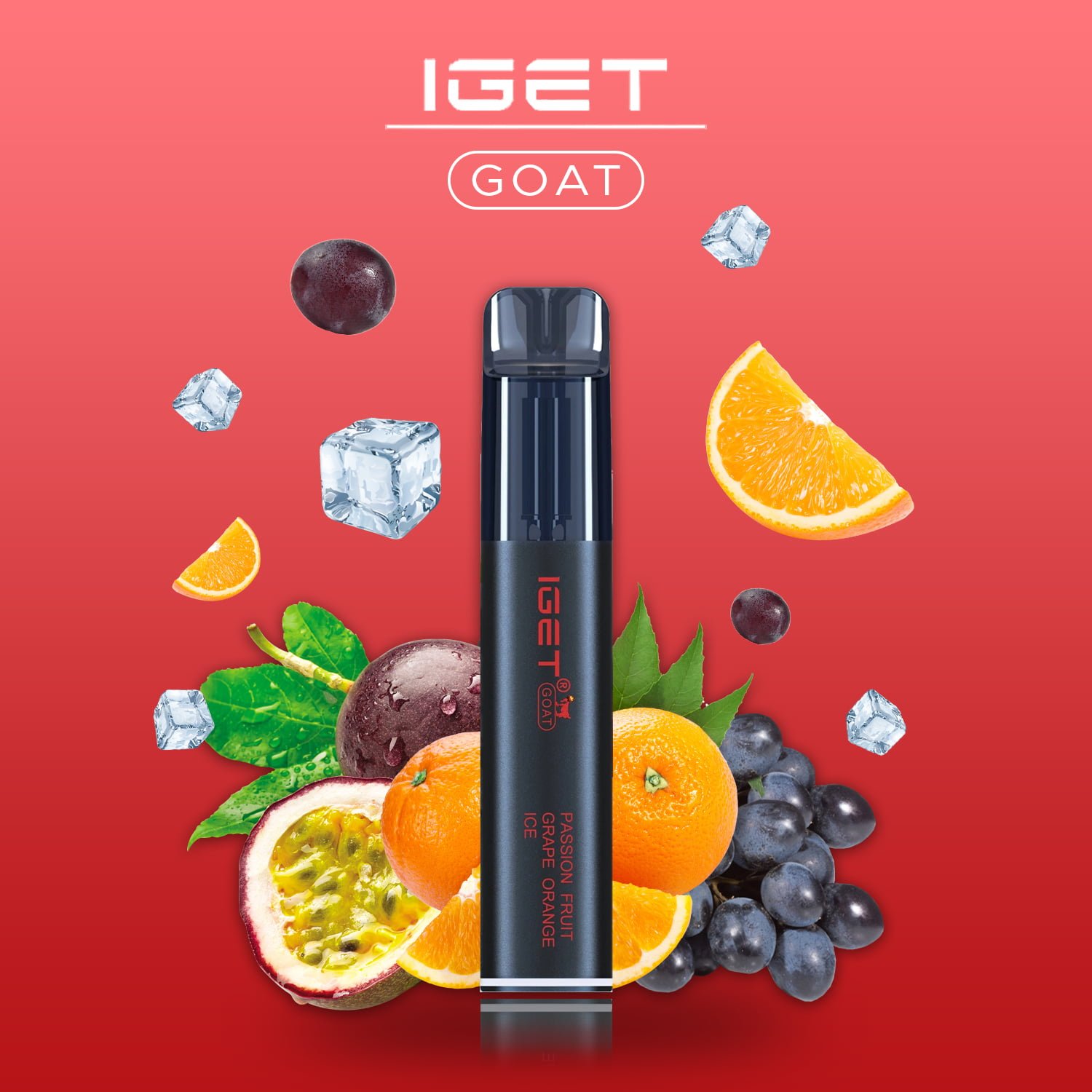 Introducing the iGet Goat disposable vape in the delectable Passionfruit Grape Orange flavour! Savor the succulent blend of juicy passionfruit, tangy grapes, and zesty oranges with every puff. The iGet Goat is designed to deliver a smooth and satisfying vape experience, without the need for charging or refilling. Simply take it out of the package and enjoy! Discover the incredible taste of iGet Goat in Passionfruit Grape Orange, the perfect choice for fruity vape enthusiasts.